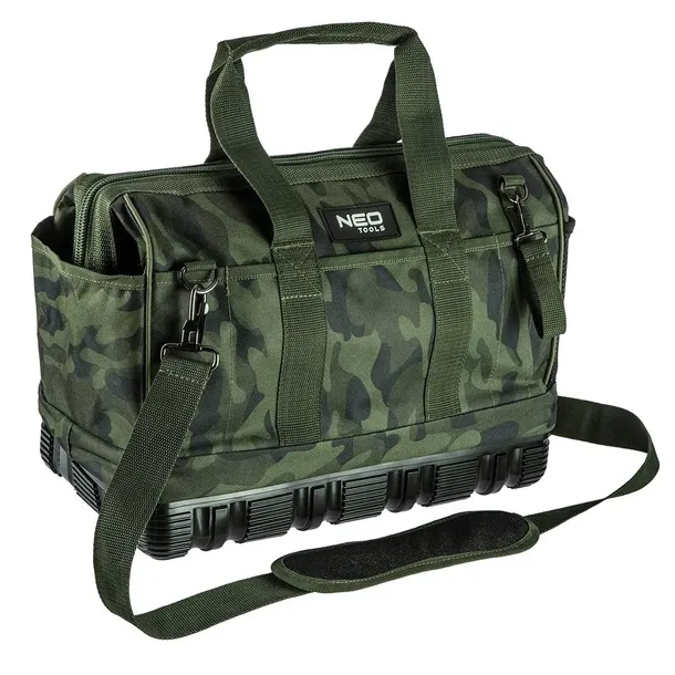 Wykonana z nylonu 600 D, gwarantującego długoletnią trwałość torby. Posiada usztywniane, wododporne dno chroniące zawartość podczas pracy w trudnych warunkach. Torba wyposażona jest w mocny uchwyt oraz pasek do przenoszenia. Marka NEO spełnia oczekiwania profesjonalistów.